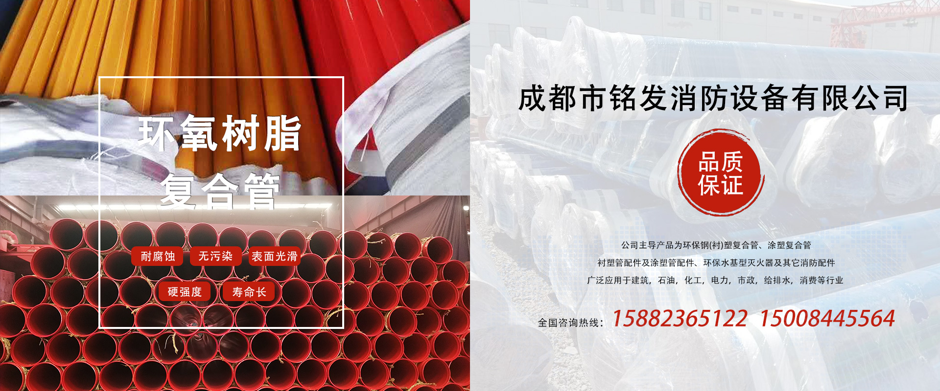 成都市銘發(fā)消防設(shè)備有限公司主導產(chǎn)品為環(huán)保鋼(襯)塑復合管、涂塑復合管、襯塑管配件及涂塑管配件、環(huán)保水基型滅火器及其它消防配件。廣泛應用于建筑、石油、化工、電力、市政、給排水、消防等行業(yè)。...